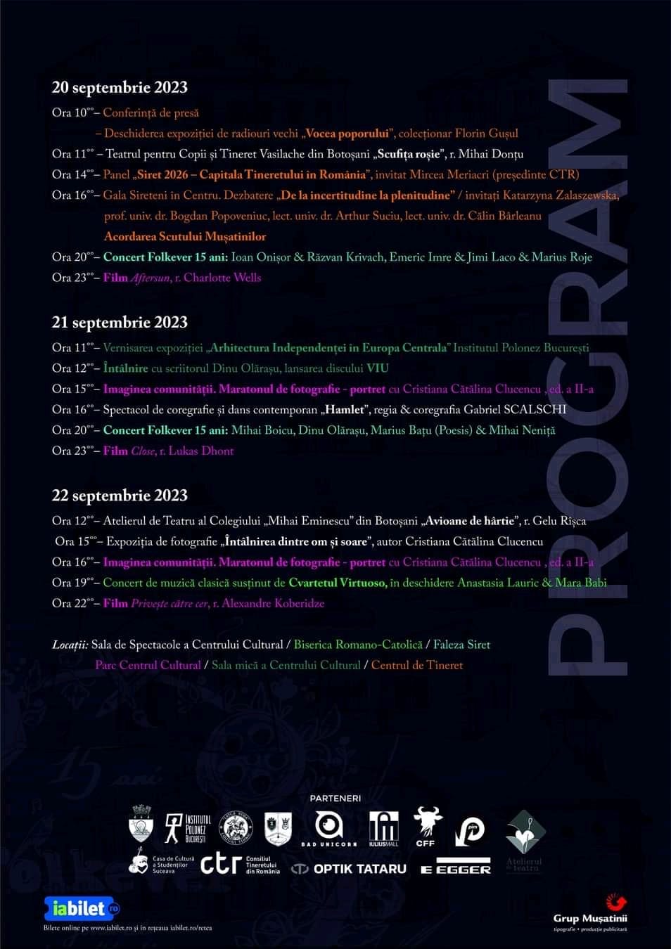Festivalul Folkever este cel mai longeviv festival din zona Moldovei și a luat naștere pe peronul gării din Siret pentru a spune povestea unei comunități mici a cărei istorie poate concura cu marile istorii al României. Interesat de regenerarea comunității prin intervenții culturale diverse și provocatoare, festivalul propune anul acesta peste 30 de invitați, dezbateri, concerte de muzică folk, muzică clasică, seri de film. Poți avea acces la toate aceste evenimente cumpărând un abonament de 40 de lei.