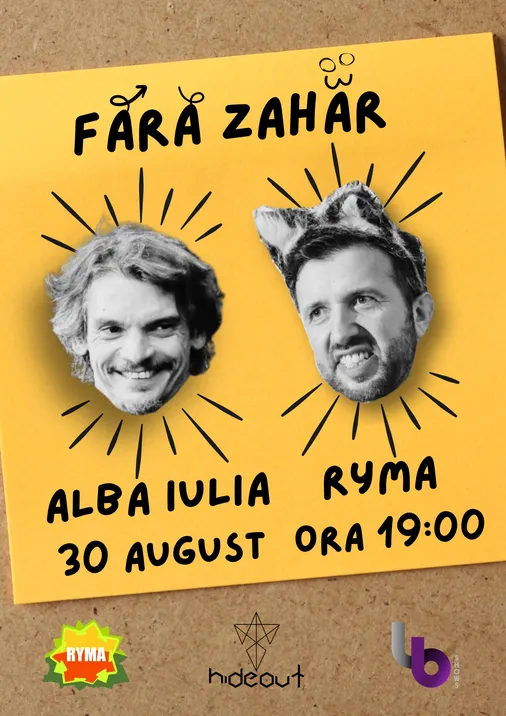 Hai duminică, 30 august, la o porţie zdravănă de voie bună cu Bobo Burlăcianu şi Bobi Dumitraş. Cântecele Fără Zahăr vor răsuna la Spațiile RYMA din Cetatea Alba Iulia.