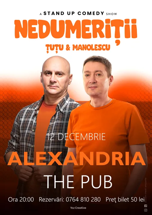 Alexandria, adună-ţi gaşca şi vino vineri, 12 decembrie, la THE PUB, să îi vezi pe Cristi – ce mi-ai pus pe tăviţă, mamă – Manolescu şi Dan Ţuţu, un povestitor desăvârşit care te va cuceri cu naturaleţea sa. Cel mai bun mod de a petrece seara de vineri, e la un show live de stand-up comedy.