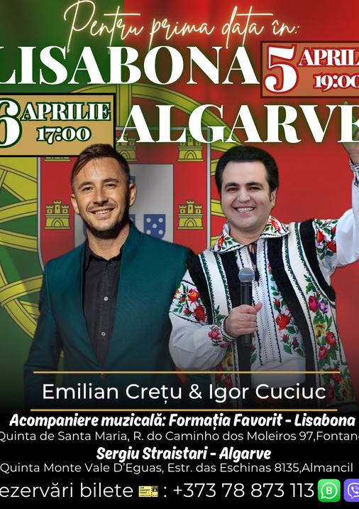 Prima petrecere Moldovenească la Algarve. Show de umor și muzică realizat de Emilian Crețu, Muzică pentru petreceri : Igor Cuciuc, muzică de petrecere Sergiu Straistari (Moldoveanul nostru talentat stabilit în regiunea dată). Restaurant superb cu bucate gustoase și băuturi incluse
