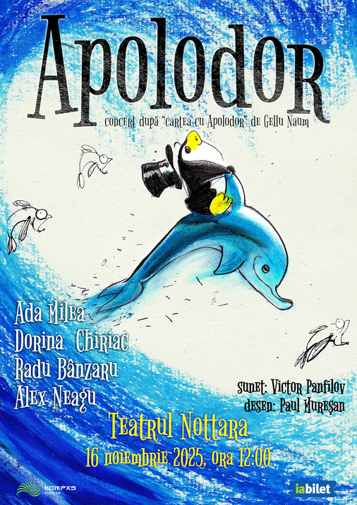Cine e Apolodor? Un pinguin mic, dar cu un dor cât cosmosul! Povestea sa, inspirată de „Cartea cu Apolodor” de Gellu Naum, prinde viață într-un spectacol-concert unic, cu muzică și text adaptat de Ada Milea. Mai multe detalii
