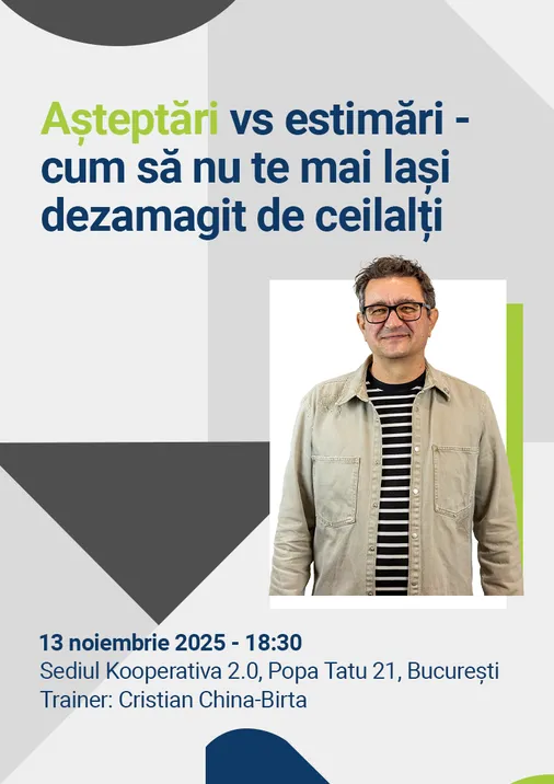 Cristian China-Birta organizează workshop-ul: „Așteptări vs Estimări - cum să nu ne lăsăm dezamăgiți de ceilalți”