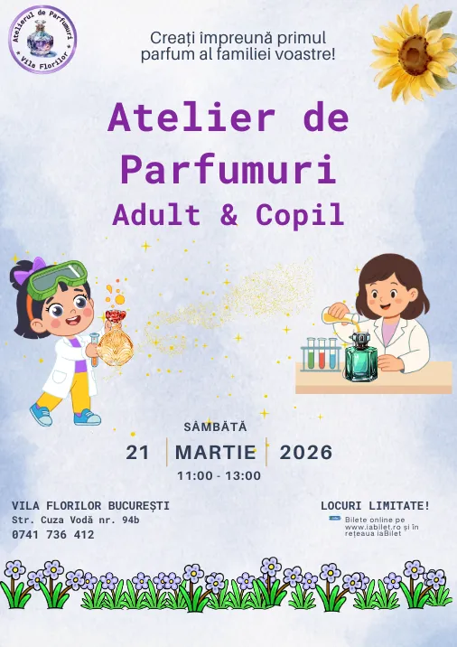 La acest atelier, tu și copilul tău veți lucra împreună pentru a crea un parfum. Veți mirosi diferite arome, le veți testa și le veți combina până când parfumul va începe să prindă contur.