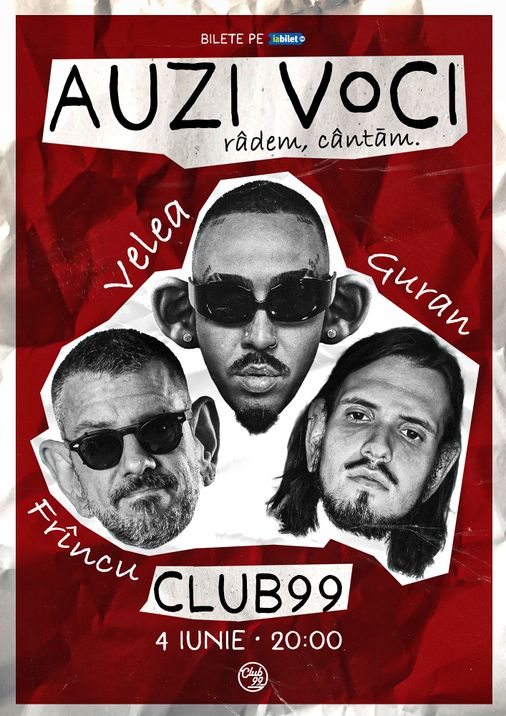 Alex Velea, Dan Frînculescu și Radu Guran intră într-un club de comedie. Nu e o glumă, e “AUZI VOCI”: un show cu muzică, parodie, glume, crowdwork și ce le-o mai veni pe loc. Participând la show, s-ar putea să cânți și tu cu ei. Dacă e. Mai multe detalii