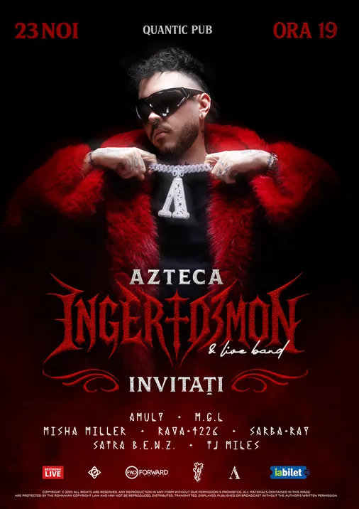 Cu un parcurs impresionant în industria muzicală și o comunitate loială de fani, Azteca și-a construit reputația prin versuri autentice, vibe-uri reci, dar sincere, și un sound care oscilează între underground dur și emoții filtrate prin beat-uri grele. După albume precum Sute Albastre, Maktub, RMN și 616: Un Nou Capitol, noul material – „iNGER & D3MON” – aduce o abordare diferită, mai matură și mai complexă, combinând contrastele dintre lumină și întuneric, introspecție, revoltă si dualitate.