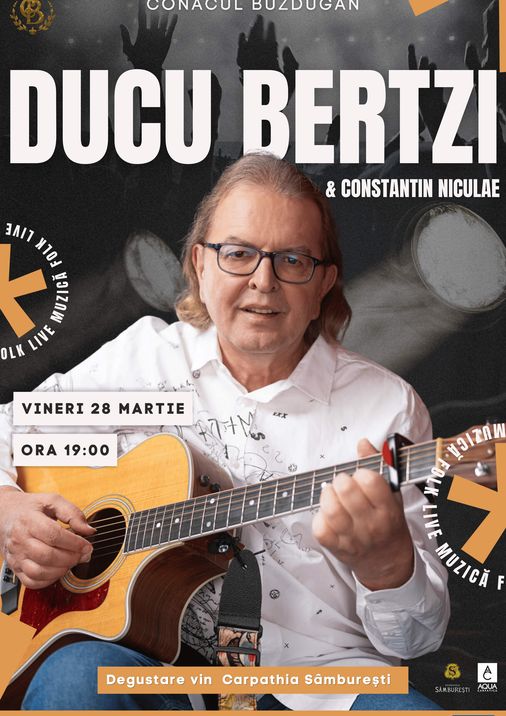 Pe 28 martie, de la ora 19:00, Conacul Buzdugan devine scena unei seri memorabile, unde muzica folk autentică își găsește locul perfect. Alături de noi vor fi Ducu Bertzi și Constantin Niculae, doi artiști care au marcat generații întregi prin sensibilitatea versurilor și acordurile calde de chitară. Mai multe detalii