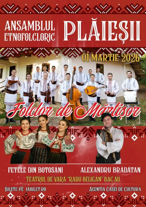 „FOLCLOR DE MĂRȚIȘOR”, un regal folcloric, alături de Ansamblul Etnofolcloric PLAIEȘII, condus de Nicolae GRIBINCEA, Fetele din BOTOȘANI și Alexandru BRĂDĂȚAN. Cu cântecul și dansul în spiritul folclorului românesc, valorificăm melosul autentic al neamului nostru.