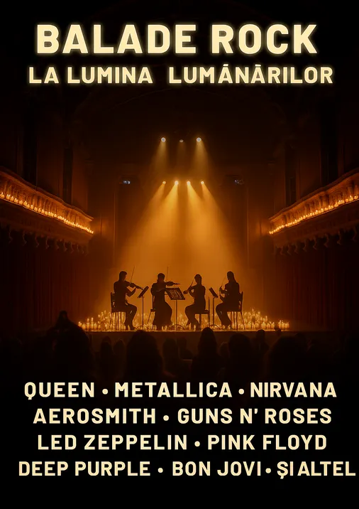 Trăiește magia celor mai mari hituri rock într-o seară specială, unde melodiile legendare vor răsuna în interpretarea unui cvartet de coarde, la lumina a sute de lumânări.