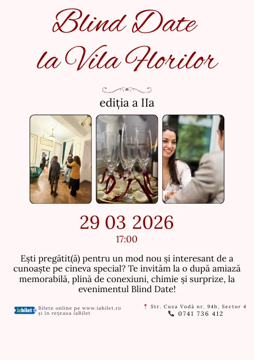 Blind Date la Vila Florilor este o seară pentru persoane singure care vor să cunoască oameni noi, într-un spațiu elegant și civilizat. Mai multe detalii
