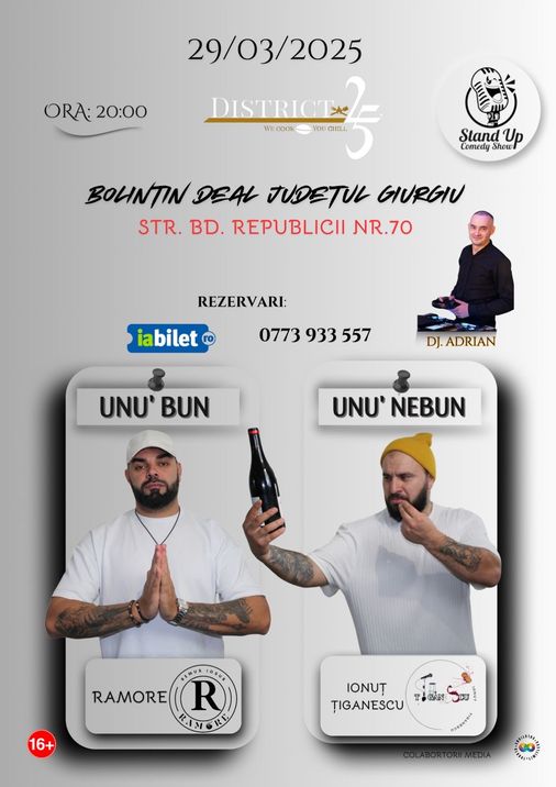 Unu bun, unu nebun” – un show de stand-up comedy plin de râs, cu glume neașteptate și umor autentic. Vino să te distrezi și să râzi la maxim! Mai multe detalii