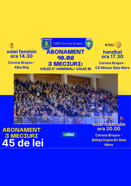 Brasov: Abonament 3 meciuri 10 februarie - Volei feminin / Handbal / Volei masculin