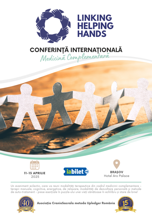 Conferinta “Linking Helping Hands” este un eveniment NON- PROFIT, care isi propune sa aduca impreuna mai multe modalitati terapeutice din cadrul medicinii complementare, un ansamblu de terapii manuale, cognitive, energetice, de relaxare, modalitati de dezvoltare personala si metode de auto-tratament, toate, ca piesele de puzzle ce pot creiona imaginea unei stări de bine şi de sănătate în toate aspectele noastre. Mai multe detalii