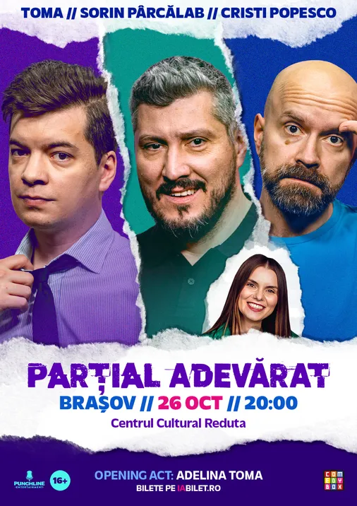 Brasov: Stand-up Comedy cu Sorin Pârcălab, Toma și Cristi Popesco | PARȚIAL ADEVĂRAT - 26.10.2025 - 20:00