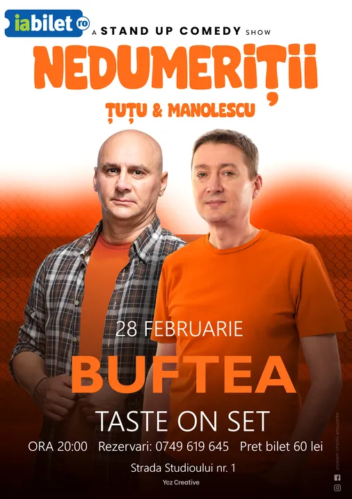 Buftea, adună-ţi gaşca şi vino sâmbătă, 28 februarie, la showul 2 de la Taste on Set, să îi vezi pe Cristi – ce mi-ai pus pe tăviţă, mamă – Manolescu şi Dan Ţuţu, un povestitor desăvârşit care te va cuceri cu naturaleţea sa.