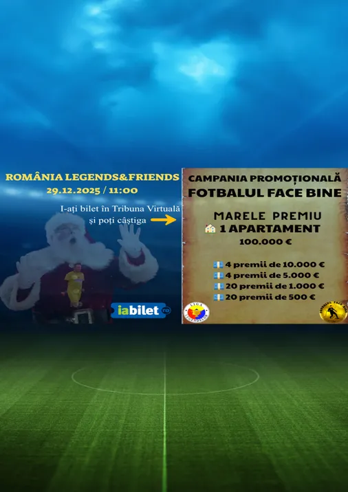 Începând cu 17 noiembrie, intră în joc la meciul-spectacol Romania Legends & Friends din 29 decembrie! Mai multe detalii