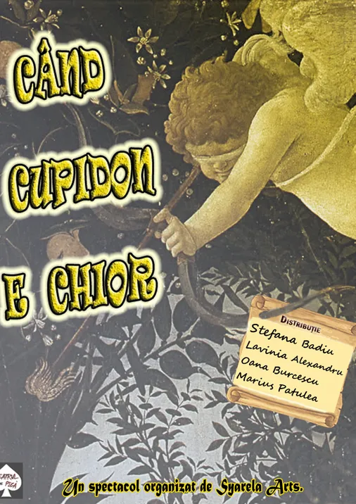 “Cand Cupidon e chior” este o comedie de exceptie adaptare dupa un manunchi de texte foarte bine scrise. Astfel, nu poate rezulta decat un spectacol savuros, presarat cu multe momente comice, in care nu ai cum sa nu te regasesti macar un pic: 3 cupluri si 6 posibilitati de relationare in dragoste, 3 perechi si 6 incurcaturi. Dupa o saptamana grea, meriti o seara plina de relaxare, o seara in care sa razi cu pofta si sa te destresezi, sa te amuzi si sa te energizezi alaturi de o trupa pestrita de teatru.