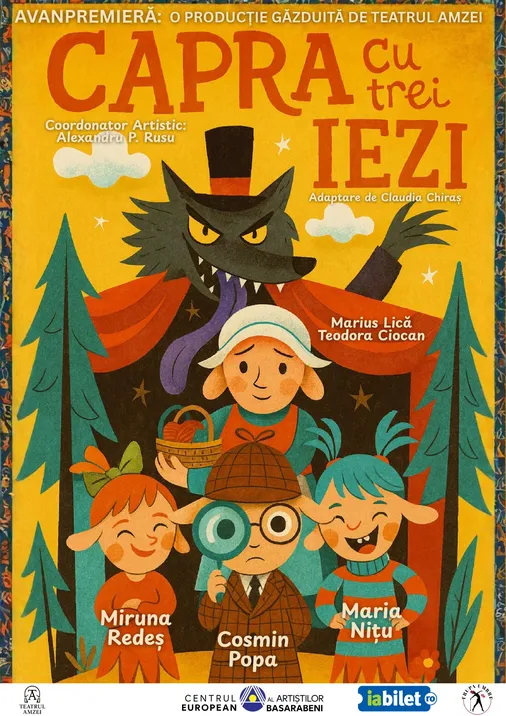 Capra cu trei iezi revine pe scenă într-o reinterpretare contemporană plină de culoare, suspans și comedie! Adaptarea semnată de Claudia Chiraș și regizată de Alexandru P. Rusu transformă celebra poveste românească într-un spectacol captivant, ideal pentru copii și părinți deopotrivă.
