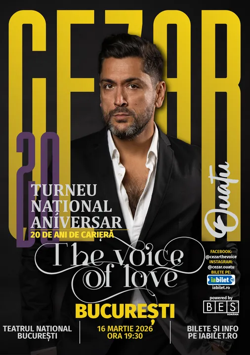În perioada februarie - martie 2026, binecunoscutul interpret de pop-opera Cezar Ouatu celebrează două decenii de carieră muzicală printr-un turneu aniversar unic – „The Voice of Love” – un spectacol care transcende genurile și aduce în lumină versatilitatea, sensibilitatea și cameleonismul excepțional al artistului. Mai multe detalii