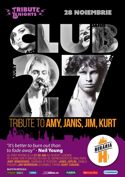 “It’s better to burn out than to fade away” - Neil Young. Ce mod mai bun de a le descrie viata? "The 27 Club is a term that refers to a number of popular musicians who died at age 27. (..) The number of musicians who have died at this age and the circumstances of many of those deaths have given rise to the idea that premature deaths at this age are unusually common. (..) The "club" has been repeatedly cited in music magazines, journals and the daily press.", Wikipedia, http://en.wikipedia.org/wiki/27_Club