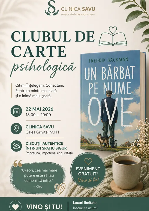 Te invităm la o nouă întâlnire a clubului de carte organizat de Clinica Savu, un spațiu în care cititul devine pretext pentru conectare, reflecție și înțelegere mai profundă.