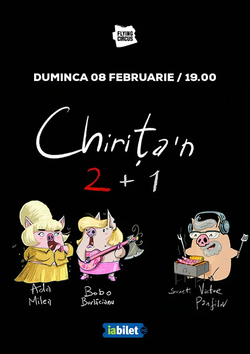 „Chirița’n 2+1” este un concert după Alecsandri, Hanu, Millo și Milea, care aduce pe scenă personaje neașteptate, situații comice și cântece care spun povești – toate într-un stil inconfundabil, care te face să râzi și să gândești în același timp. Mai multe detalii