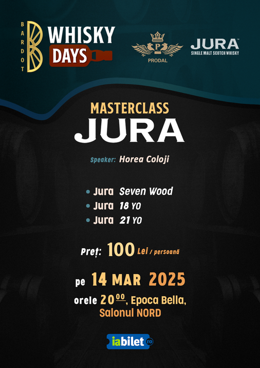 Distileria Jura a fost înființată în 1810 și a renăscut în 1963 pentru a readuce viața insulei și comunității. Și ce succes a fost! Astăzi, aproape fiecare familie de pe insulă are un membru care lucrează în, cu distileria Jura sau în turismul legat de whisky. Pentru că Jura contează mai mult pentru cei care o fac, poți gusta dăruirea lor din fiecare înghițitură, pe 14 Martie, ora 20:00, la Epoca Bella din Cluj-Napoca.