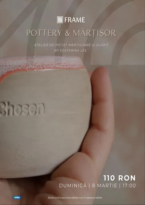 Pe 8 martie 2026, spațiul FRAME Cluj găzduiește Pottery & Mărțișor, un eveniment care readuce în prim-plan farmecul tradiției prin prisma artei contemporane. Într-o zi dedicată celebrării feminității, vă invităm la o experiență boutique ce îmbină relaxarea cu satisfacția de a crea obiecte unice, de la zero. Mai multe detalii