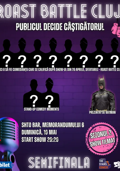 8 comedianți, 4 confruntări explozive, 80 de glume de roast, 4 comedianți aleși de public să meargă mai departe în marea FINALĂ!