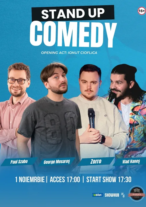 George Mesaroș, Paul Szabo, Hanes si Zorro va asteapta la un show de Stand-Up Comedy in data de 01 Noiembrie la Klausen Pubhouse in Cluj-Napoca! Mai multe detalii