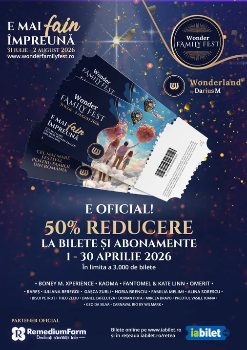 Biletele sunt acum la jumătate de preț, iar numărul lor este limitat! Grăbește-te să îți asiguri locul și să te bucuri de o experiență plină de magie, distracție și emoții pentru toate vârstele. Mai multe detalii