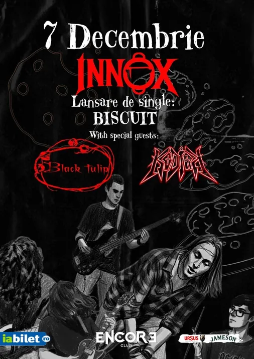 INNOX este o trupa Metal cu influente Grunge, formata in 2025, ce readuce energia Rock intr-un sound direct si intens. Debuteaza cu single-ul „Biscuit”, piesa celebrata in acest concert.