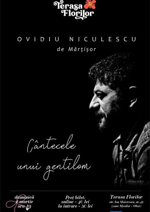 Duminică, de Mărțișor, avem bucuria să vă invităm la super-concertul lui OVIDIU NICULESCU, solist și textier al îndrăgitei trupe White Mahala, concert denumit "Cântecele unui gentilom", după numele viitorului album al artistului.