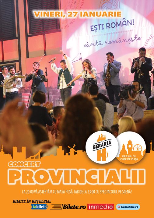 Cu o componenţă de 10 membri, peste 15 ani de activitate, sute de concerte, participări la Eurovision, Cerbul de Aur, Festivalul de la Mamaia, Provincialii vin acum la Berăria H pentru un spectacol etno-pop-rock energic ce va ridica sala în picioare.