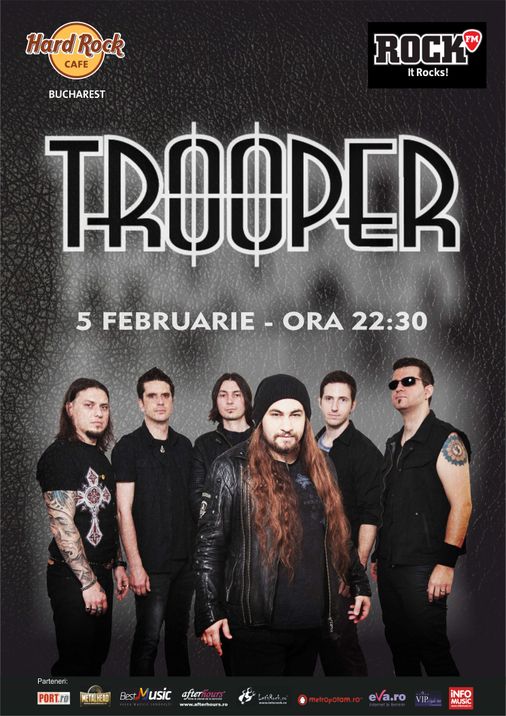 Una dintre cele mai iubite trupe ale momentului te aşteaptă la o seară de rock autentic pe 5 februarie, de la ora 22.30, la Hard Rock Cafe. Dacă “Tari ca munţii”, “Amintiri”sau “Strigăt” se află în topul preferinţelor tale, nu pierde concertul Trooper! Cei şase muzicieni pun la cale un show complex, cu cele mai iubite piese din repertoriu lor, dar şi cu hituri rock ce au făcut istorie. Mai multe detalii