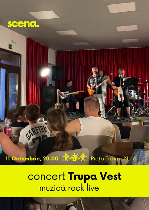 Pe 11 octombrie, de la ora 20:00, ne reîntâlnim la Scena. pentru o nouă seară de muzică live cu Trupa Vest și Red Diamonds.