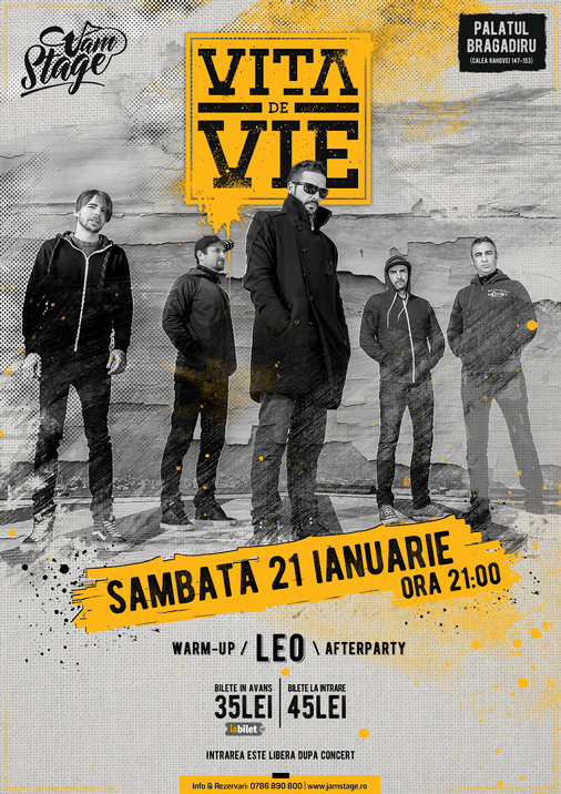 Sambata 21 Ianuarie vom avea ocazia sa-i vedem pe scena din JamStage si sa le ascultam noile piese cantate live, dar si multe din melodiile lor consacrate de pe celelalte albume, in primul concert sustinut in Bucuresti in 2017. Nu uitati, Vita-de-Vie va lansa cate un nou single de pe albumul "Sase (+)" pe fiecare 20 ale lunii.