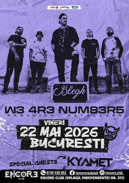 W3 4R3 NUM83R5 x Kyamet live in Encore Club | 22.05.2026 | 20:00 Mai multe detalii