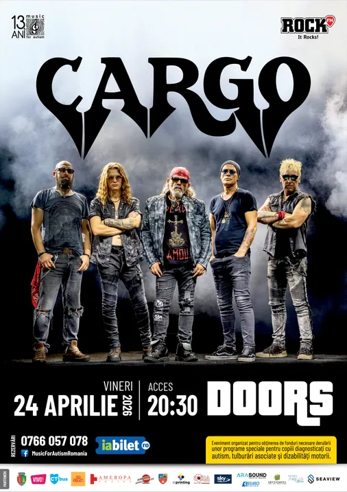 Trupa CARGO invită fanii și iubitorii muzicii rock din Constanţa la concertul aniversar Music for Autism – 13 ani, vineri 24 aprilie 2026, acces ora 20.30 în Club Doors Constanța. Mai multe detalii