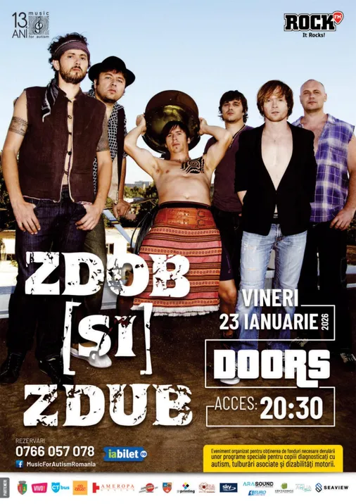 Zdob și Zdub urcă pe scena Doors Club într-un concert umanitar, dedicat campaniei Music for Autism, o inițiativă născută chiar aici, în clubul Doors și care de 13 ani aduce muzica mai aproape de cei care au nevoie de ea, vineri, 23 ianuarie 2026, acces de la ora 20:30. Mai multe detalii