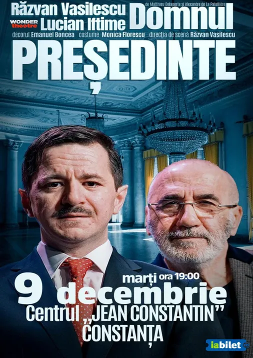 Pe 9 decembrie, la Centrul Cultural „Jean Constantin” din Constanța, publicul este invitat la premiera spectacolului de comedie „Domnul Președinte”, o satiră politică explozivă care aduce pe scenă culisele puterii și fragilitățile omului ajuns în cea mai înaltă funcție din stat.