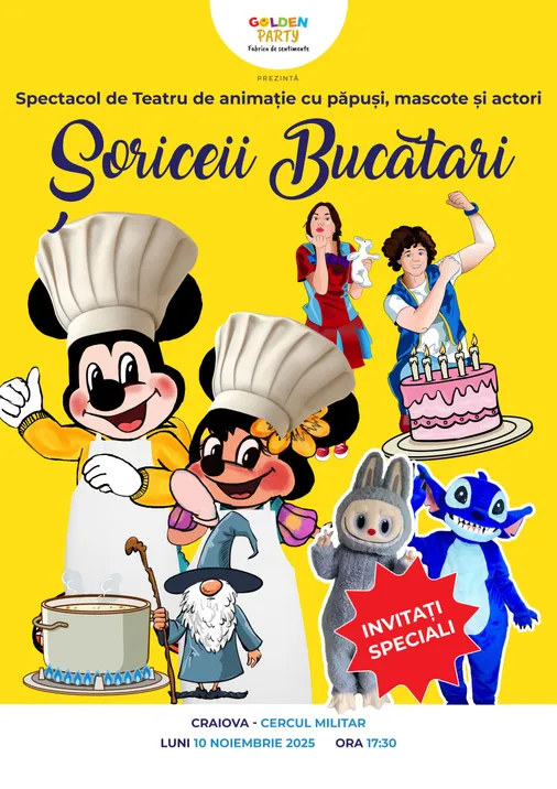 Spectacol muzical cu mascote, personaje și păpuși Acum ai ocazia să îți întâlnești pe cei mai faimosi șoricei,personajele favorite ale copiilor ,în cadrul celui mai distractiv spectacol pentru copii. Mai multe detalii