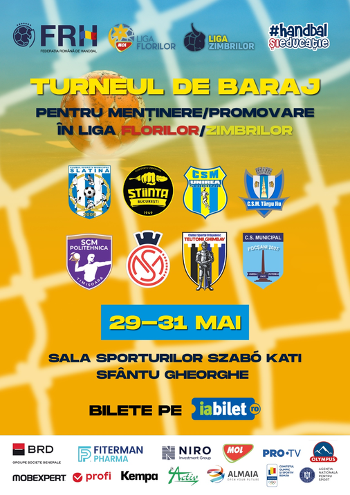 Federatia Romana de Handbal, organizeaza in perioada 29-31.05.2025, Turneul de Baraj mentinere/promovare in Liga Nationala Feminina pentru sezonul competitional 2025/2026, in Sala Sporturilor Kati Szabo din Sf. Gheorghe. Mai multe detalii