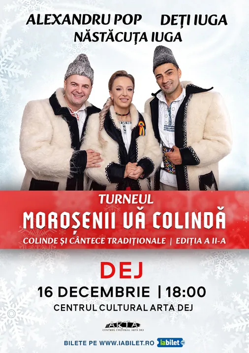 Dacă de Crăciun, toate drumurile duc în Maramureș, în perioada premergătoare acestuia, Maramureșul ia drumul colindatului și vine în orașele dumneavoastră prin prezența îndrăgiților artiști maramureșeni: Deți Iuga, Năstăcuța Iuga si Alexandru Pop!