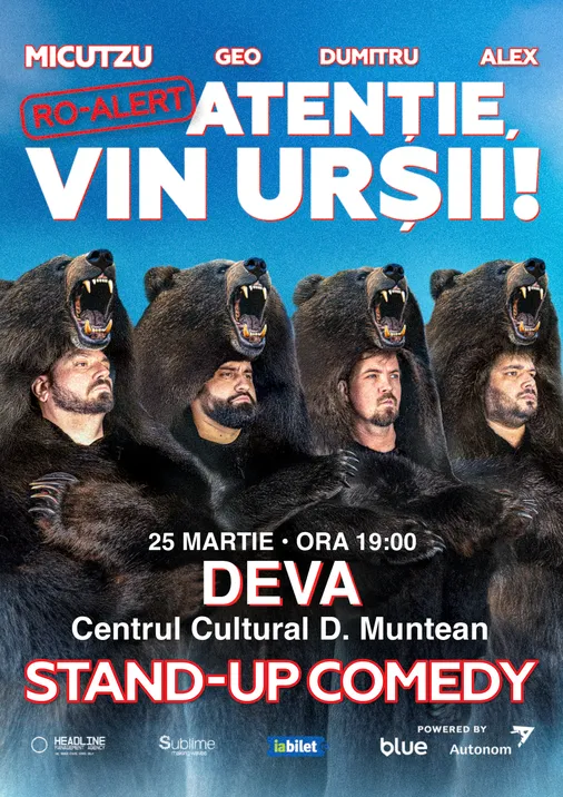 Deva: Stand-up Comedy cu Micutzu, Geo Adrian, George Dumitru si Alex Ionita - RO ALERT - “Atentie, vin ursii!"