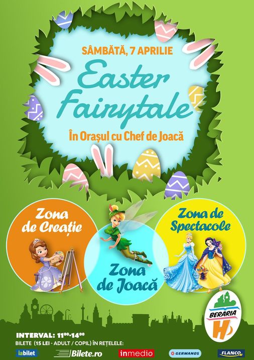 • Zona de joaca : copiii vor avea parte de jocurile magice ale copilariei si se vor juca cu voluntarii si cu printesele din povesti. Printe jocuri se numara : Sotron, Popice colorate, Ghici ce-i aici, Cadouri de la Iepuras, Bagheta Magica, Twister, Ceasul urias, Cel mai inalt turn, Iepurasul zambaret, Piramida colorata, X si O