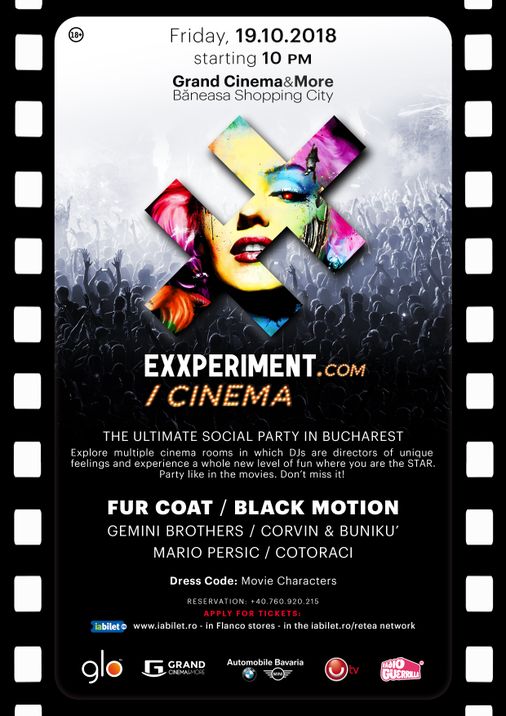 You’re invited on October 19th - starting 10 PM to step inside the Grand Cinema & More (Băneasa Shopping City) to be surprised and discover that movies can be real, at least for one night, in the ultimate social party in Bucharest: EXXPERIMENT / Cinema. Mai multe detalii