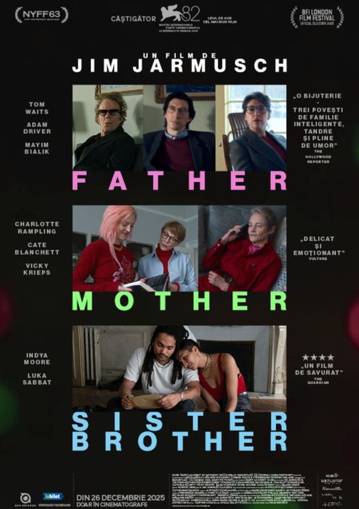 Câștigător al Leului de Aur la Festivalul de Film de la Veneția 2025, Father Mother Sister Brother este un film de o sensibilitate rară, care explorează cu finețe legăturile invizibile și adesea dureroase dintre părinți și copiii lor deveniți adulți.