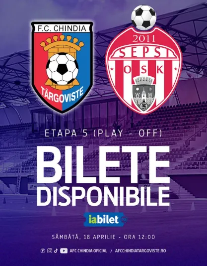 FC Chindia Targoviste - Sepsi OSK Sfântu Gheorghe, meci din cadrul etapei a V-a a play-off-ului Ligii 2 la fotbal.