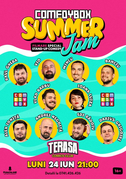 Se întâmplă Summer Jam pe Terasa Comics! 10 comedianți super talentați, amuzanți, frumoși și câte și mai câte, urcă rând pe rând la microfon, ca să-ți facă seara mai bună, în timp ce te bucuri de răcoare și de o bere rece!