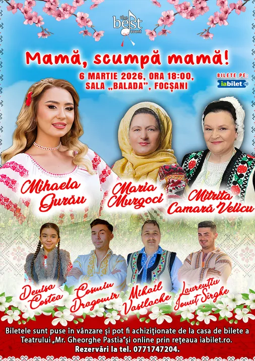 Spectacolul va avea loc vineri, 6 martie 2026, începând cu ora 18:00, la Sala „Balada” din Focșani, într-un cadru care va deveni, pentru o seară, spațiul ideal al emoției și al respectului față de familie și tradiție.
